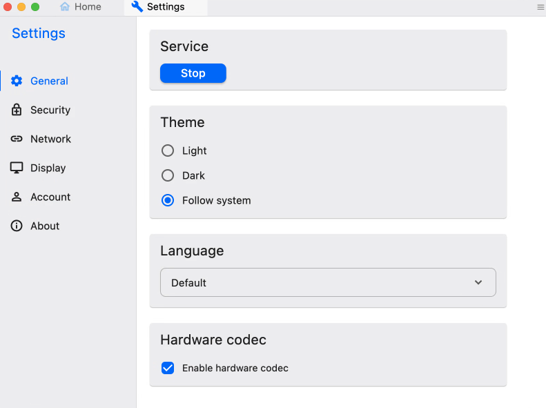 Use the toggle on the right to enable Rustdesk - You will need to use your password to Authenticate