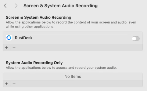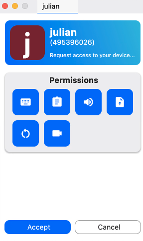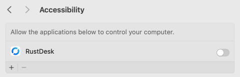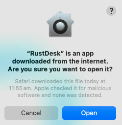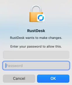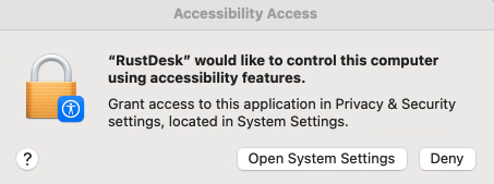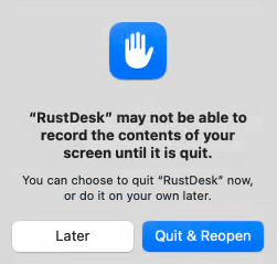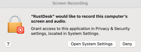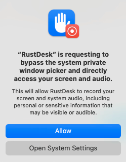 The last pop up will then confirm your selection to allow Rustdesk to access your Desktop.