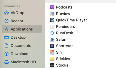 Go to the Applications Folder. The RustDesk software is now available for use.